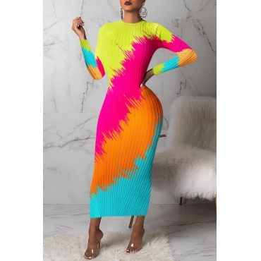 Lovely Casual Color-lump Multicolor Mid Calf Dress