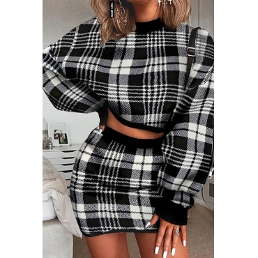 Lovely Casual Plaid Black Two-piece Skirt Set