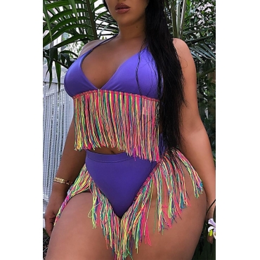 Lovely Tassel Design Purple Two-piece Swimsuit