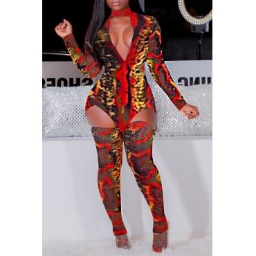 Lovely Sexy Deep V Neck Red Two-piece Pants Set