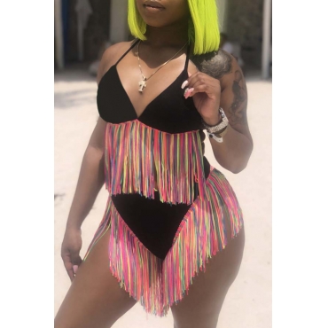 Lovely Tassel Design Black Two-piece Swimsuit