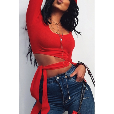 Lovely Casual O Neck Lace-up Red T-shirt