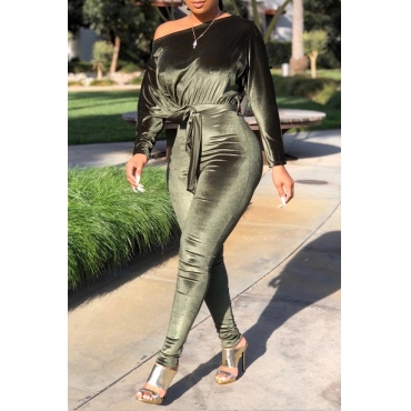 Lovely Casual Dew Shoulder Green One-piece Jumpsuit