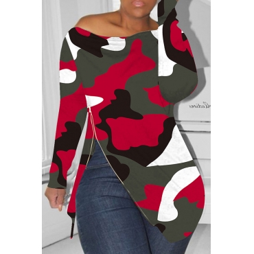 Lovely Casual Turndown Collar Camouflage Printed Wine Red Floor Length Dress