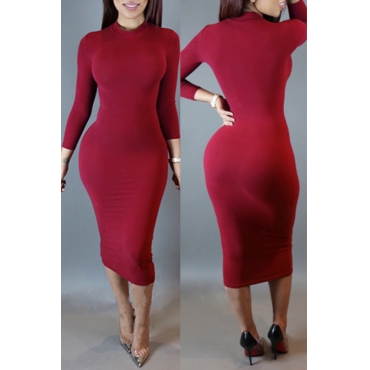 Lovely Leisure Skinny Purplish Red Knee Length Dress
