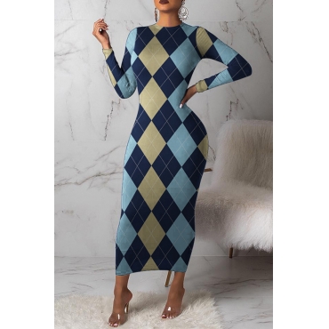 Lovely Trendy Grid Printed Blue Ankle Length Dress