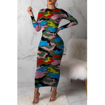 Lovely Casual Camouflage Printed Multicolor Mid Calf Dress