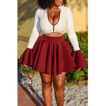 Lovely Casual Zipper Design Wine Red Two-piece Skirt Set
