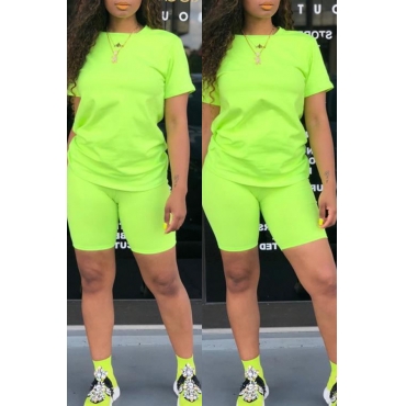 Lovely Casual O Neck Green Two-piece Shorts Set