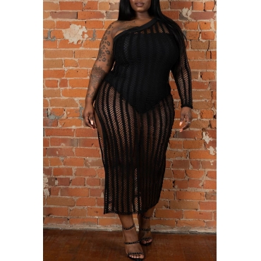 Lovely One Shoulder Hollow-out Black Plus Size Cover-up