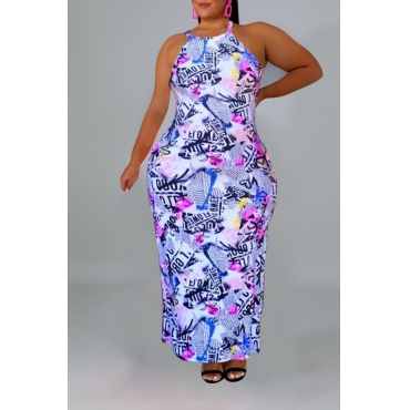 Lovely Casual Letter Printed White Ankle Length Plus Size Dress