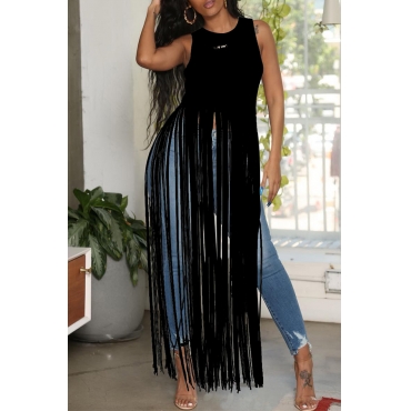 Lovely Chic Tassel Design Black Blouse