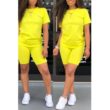 Lovely Casual O Neck Yellow Two-piece Shorts Set
