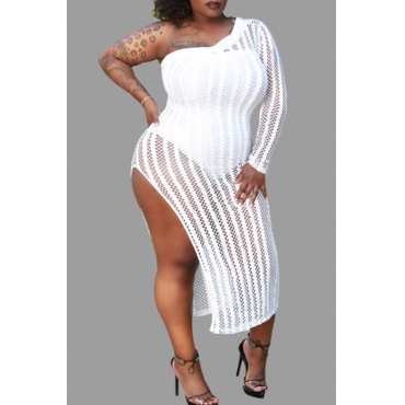 Lovely Sexy One Shoulder Hollow-out White Plus Size Cover-up
