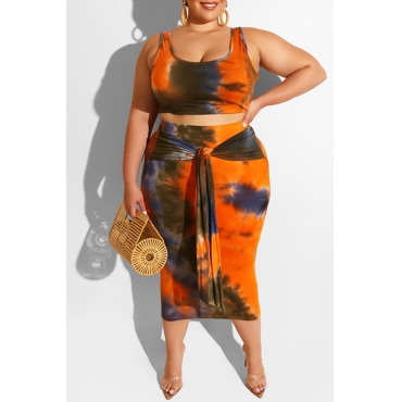 Lovely Casual Tie-dye Croci Plus Size Two-piece Skirt Set