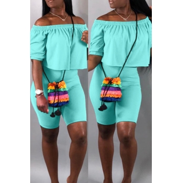 Lovely Casual Off The Shoulder Baby Blue Two-piece Shorts Set