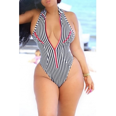 Lovely Deep V Neck Striped Printed One-piece Swimwear