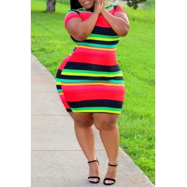 Lovely Casual O Neck Striped Red Floor Length Dress