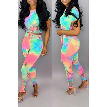 Lovely Casual Tie-dye Printed Two-piece Pants Set