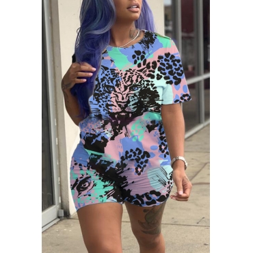 Lovely Casual Printed Blue Two-piece Shorts Set