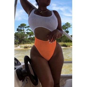 Lovely Patchwork Hollow-out One-piece Swimwear