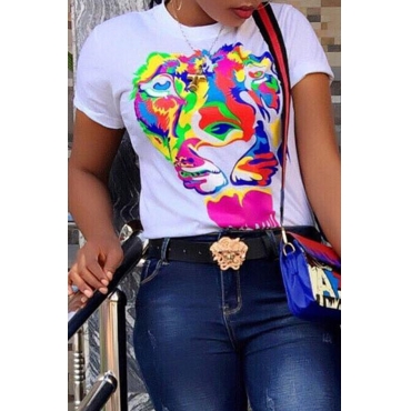 Lovely Casual Animal Printed White T-shirt