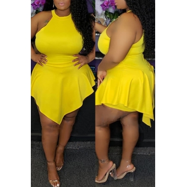 Lovely Sexy Halter Neck Asymmetrical Yellow One-piece Romper