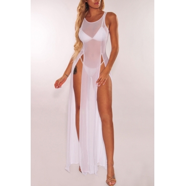 Lovely Sexy White See-through High Split Cover-up(Without Lining)