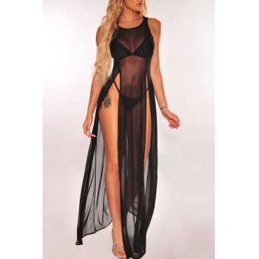 Lovely Sexy Black See-through High Split Cover-up(Without Lining)