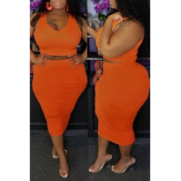 Lovely Casual O Neck Sleeveless Orange Two-piece Skirt Set