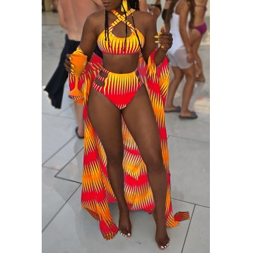 Lovely Printed Hollow-out Red Two-piece Swimwear(With Cover-up)