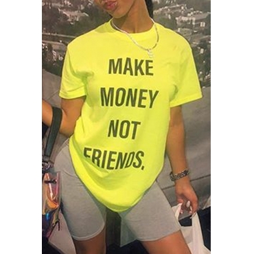 Lovely Lovelywholesale Casual Letter Printed Yellow T-shirt