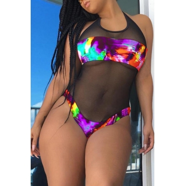 Lovely Purple Mesh Stitching One-piece Swimwear