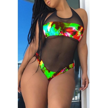 Lovely Green Mesh Stitching One-piece Swimwear