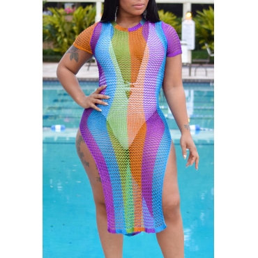 Lovely Sexy Hollowed-out Multicolor Beach Dress