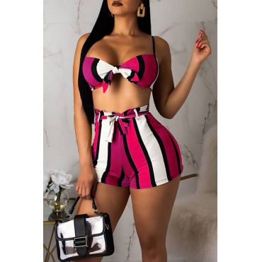 Lovely Sexy Striped Knot Design Rose Red Two-piece Swimwear