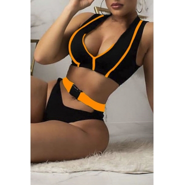 Lovely Sexy Patchwork Orange Two-piece Swimwear