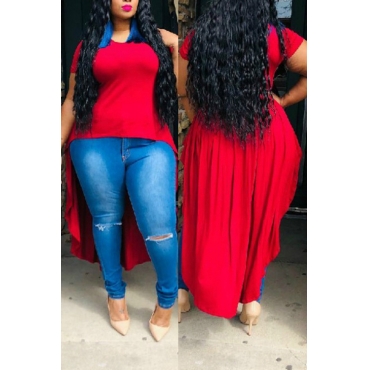 Lovely Casual O Neck Asymmetrical Red T-shirt