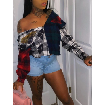 Lovely Casual Turndown Collar Plaid Print Patchwork Multicolor Blouse
