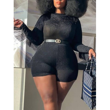 Lovely Chic Tassel Design Sequined Black Plus Size One-piece Romper(Without Belt)
