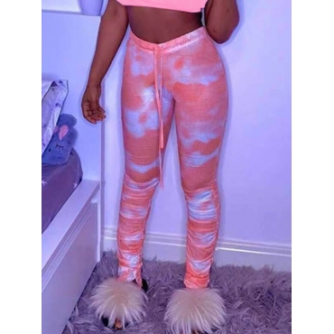 Lovely Casual Tie-dye Ruched Drawstring Red Pants