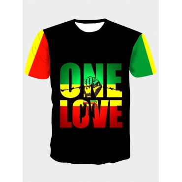 Lovely Casual O Neck Letter Print Patchwork Black Men T-shirt