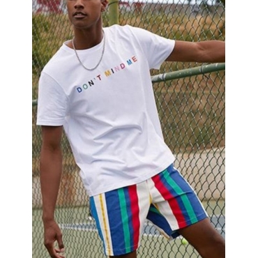Lovely Casual Letter Print Striped White Men Two Piece Shorts Set