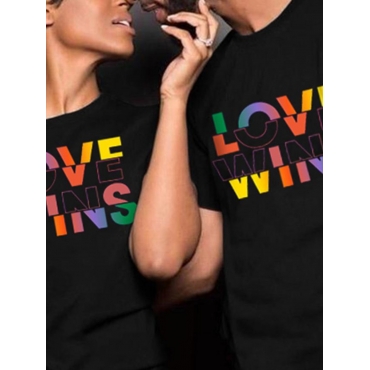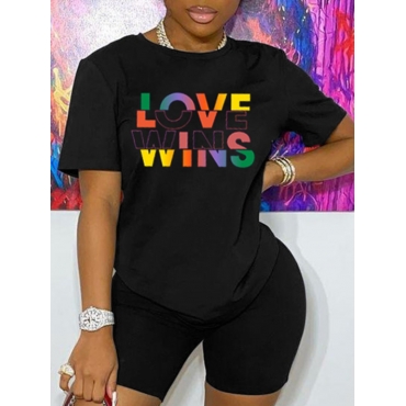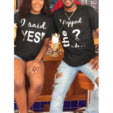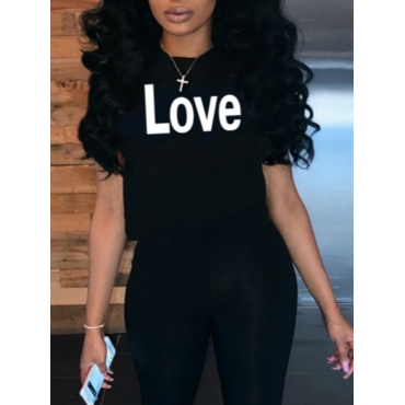 Lovely Trendy Valentines Day Letter Print Black T-shirt