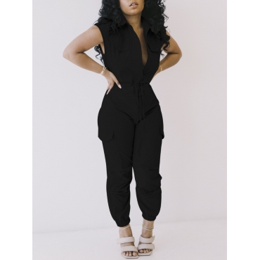 Lovely Work Turndown Collar Sleeveless Black One-piece Jumpsuit