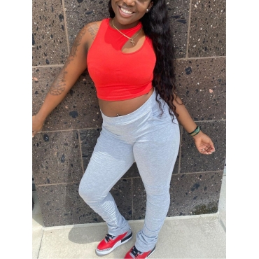 Lovely Casual Asymmetrical Ruched Red Two Piece Pants Set
