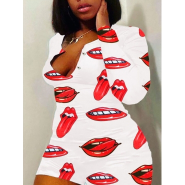Lovely Casual Lip Print White Plus Size One-piece Romper