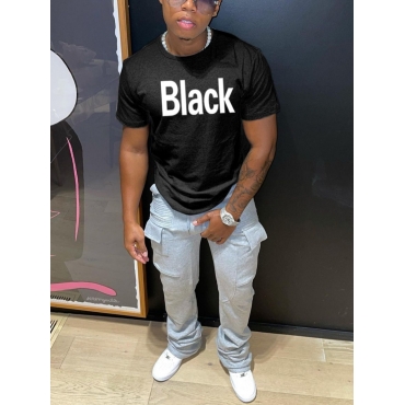Lovely Trendy Valentines Day Letter Print Black Men T-shirt