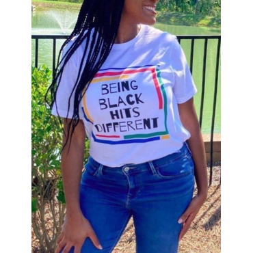 Lovely Casual O Neck Letter Print White Plus Size T-shirt