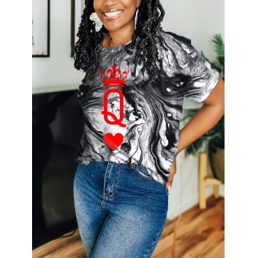 Lovely Polyester Casual Print Regular sleeve Basic Regular Short Sleeve O Neck Valentines Day Positioning Print Tshirt